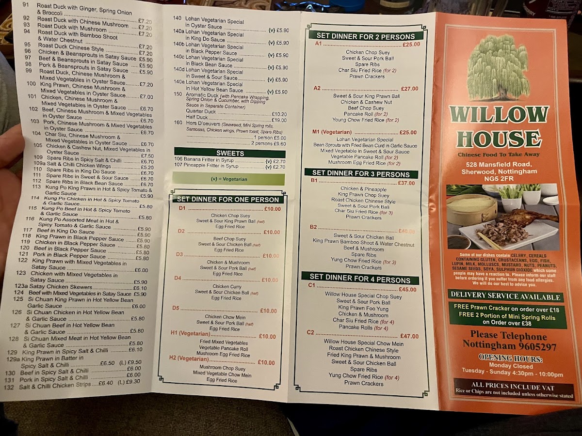 Willow House offers a straightforward, comforting menu that suits casual dining and takeaway occasions alike. The selection represents classic Chinese takeaway favourites, designed for easy enjoyment whether you’re grabbing a quick lunch or a relaxed evening meal at home.